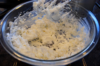 Looking for a little more cherry flavor, I decided to convert Martha's Strawberry Meringue Buttercream into Sour Cherry Swiss Meringue. I did this by reconstituting more cherries, processing them in the blender, and adding them to the buttercream at the end.